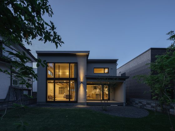 アプローチだけでなく裏の庭もしっかり造園された緑風の家は、緑道に面するこの地域によく馴染んでいます。